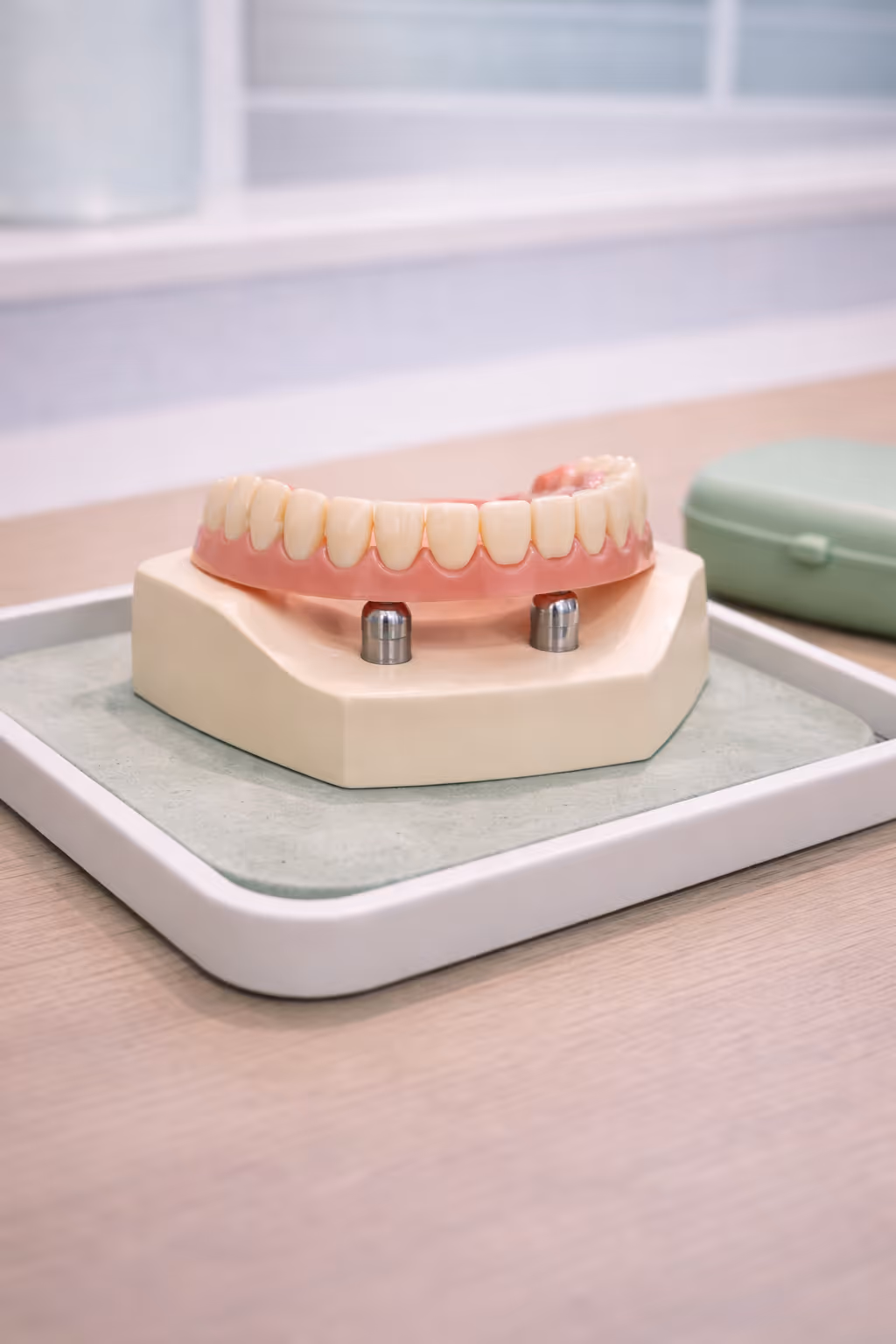 This type of denture is supported by two dental implants placed in the jawbone. The denture connects to the implants using secure attachments, helping keep it in place during speaking and eating.